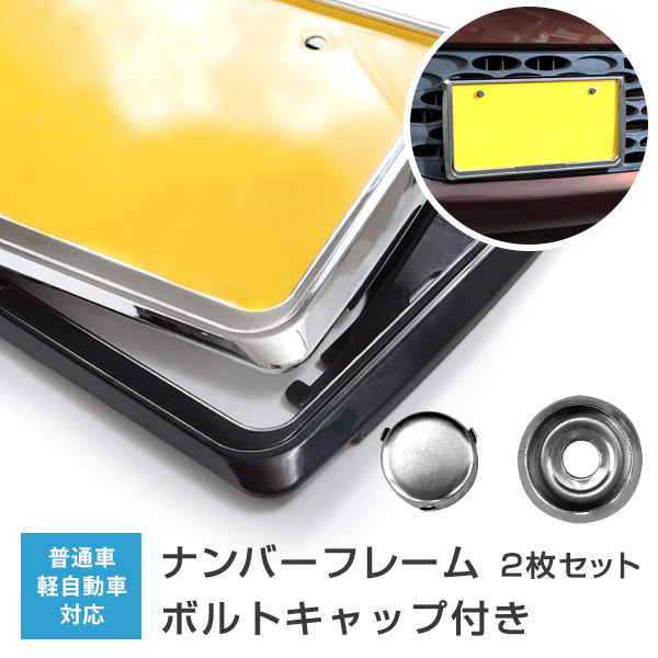 【新基準対応】 前後2枚セット ナンバーフレーム ボルトキャップ付き ナンバープレート クローム シルバーメッキ ブラック ナンバー かんたん おしゃれ
