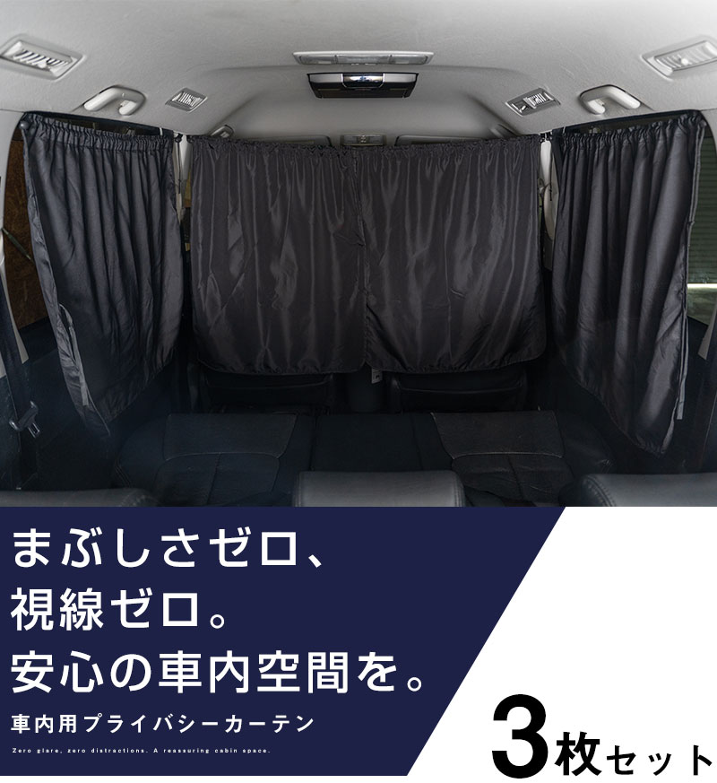 吊り下げ式 車内カーテン 3枚セット 紐で固定 調整自在 UVカット 遮光 キャンプ アウトドア 車中泊 便利グッズ 便利アイテム