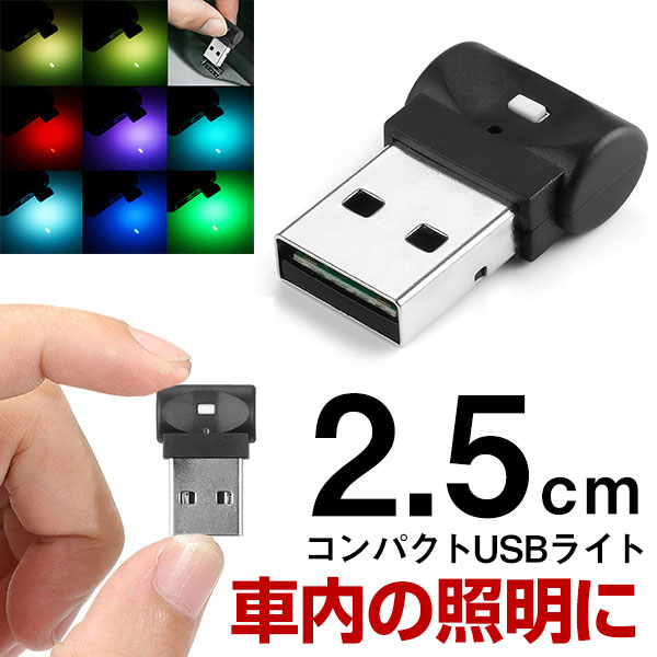 【発光カラー8パターン!】 ミニUSBライト LEDライト ミニライト 2チップ コンパクト おしゃれ 車内 間接照明 防災 非常用 自動点灯