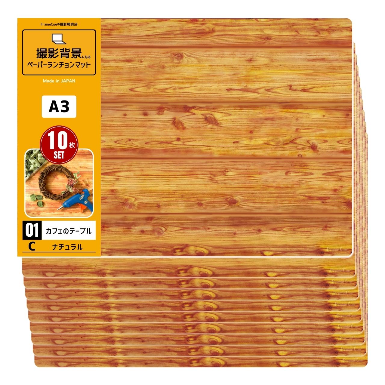 FrameCue 10枚セット 01カフェのテーブルCナチュラル(1柄×10枚)撮影背景になるペーパーランチョンマット A3 背景紙 ペーパーランチョンマット 撮影