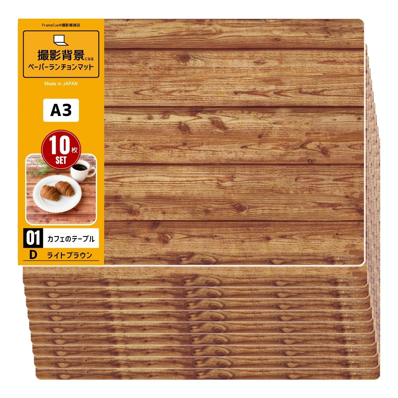 FrameCue 10枚セット 01カフェのテーブルDライトブラウン(1柄×10枚)撮影背景になるペーパーランチョンマット A3 背景紙 ペーパーランチョンマット 撮影