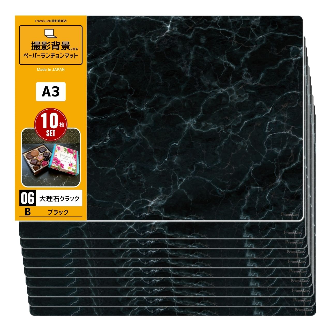 FrameCue 10枚セット 06大理石クラックBブラック(1柄×10枚)撮影背景になるペーパーランチョンマット A3 背景紙 ペーパーランチョンマット 撮影