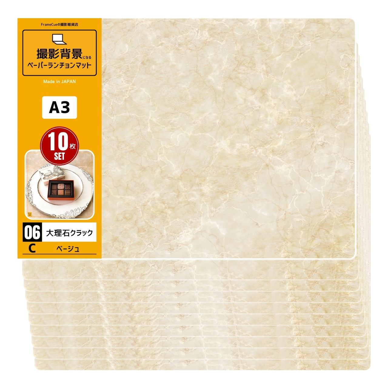 FrameCue 10枚セット 06大理石クラックCベージュ(1柄×10枚)撮影背景になるペーパーランチョンマット A3 背景紙 ペーパーランチョンマット 撮影