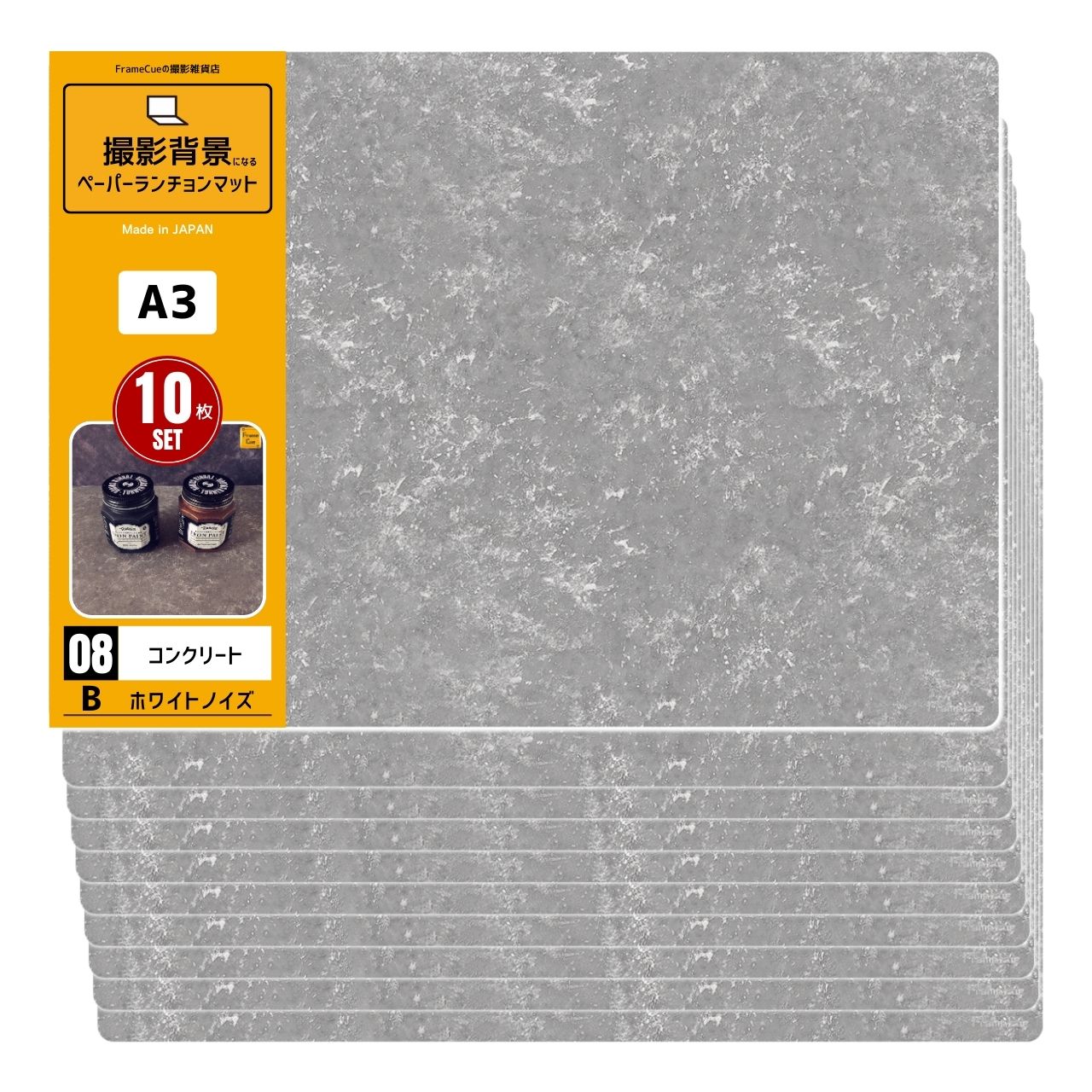 FrameCue 10枚セット 08コンクリートBホワイトノイズ(1柄×10枚)撮影背景になるペーパーランチョンマット A3 背景紙 ペーパーランチョンマット 撮影