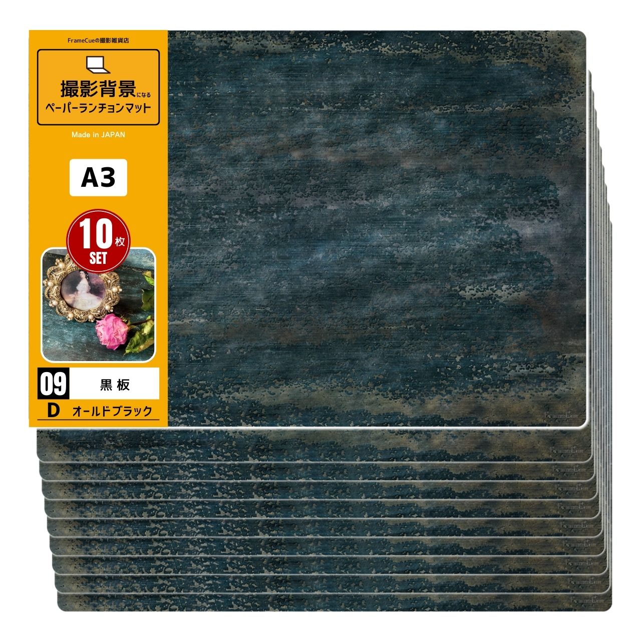 FrameCue 10枚セット 09黒板Dオールドブラック(1柄×10枚)撮影背景になるペーパーランチョンマット A3 背景紙 ペーパーランチョンマット 撮影 バックペーパー