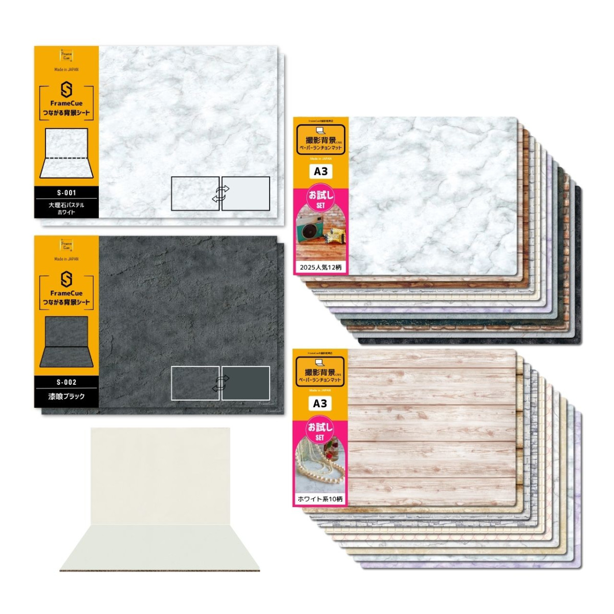 (4)「FrameCue 撮影背景になるペーパーランチョンマット ホワイト系お試し10柄セット(10枚入)」1点