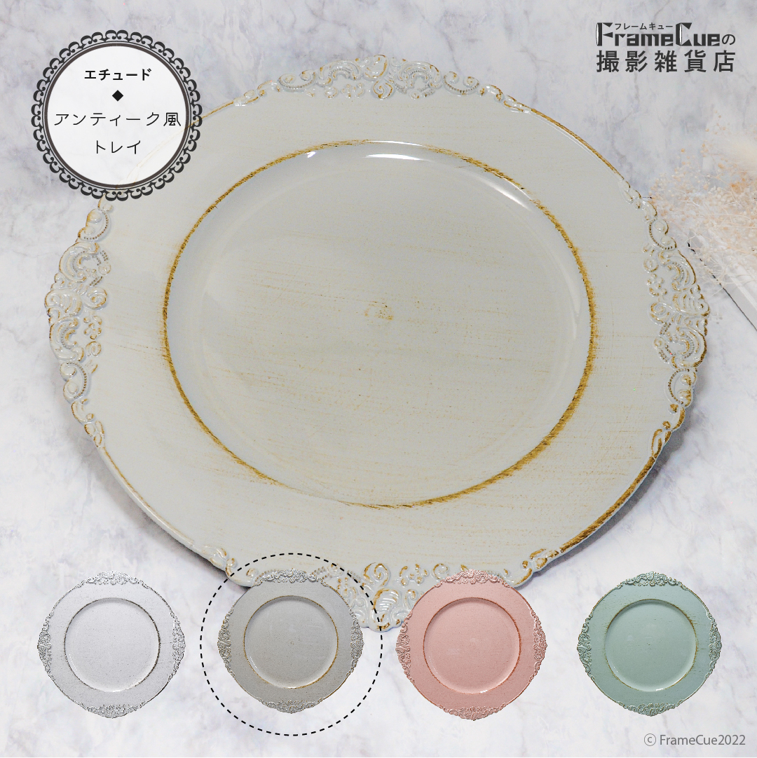 アンティーク風トレイ(モスグレー)撮影用 トレー プレート 皿 アクセサリー 小物 雑貨 置き 撮影 背景