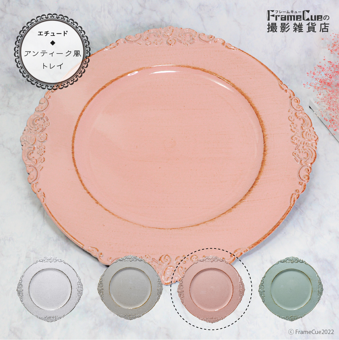 アンティーク風トレイ(コーラルピンク)撮影用 トレー プレート 皿 アクセサリー 小物 雑貨 置き 撮影 背景