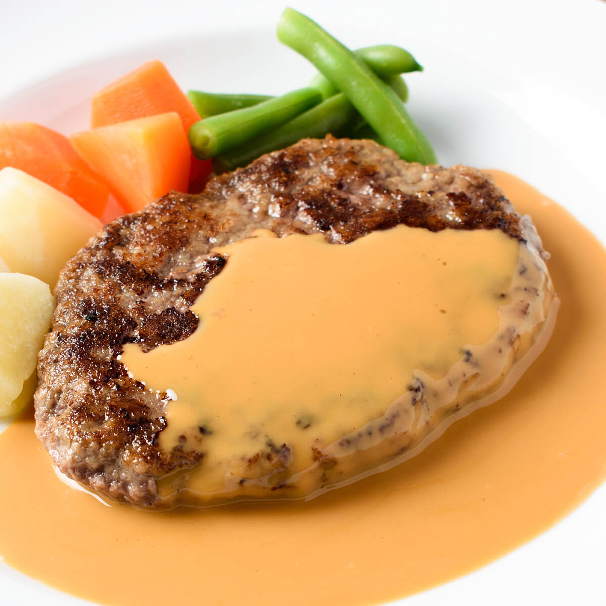 | 黒毛和牛ハンバーグ クリームブラウンソース付き | ||