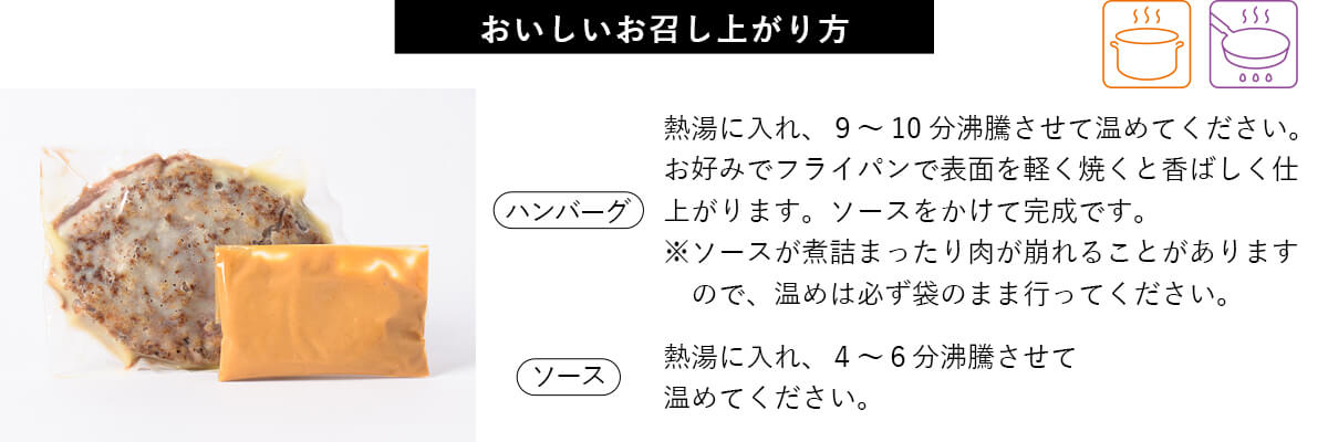 | 黒毛和牛使用!特別な日のプレミアムハンバーグ 「家で外食気分を味わいたい」「誕生日だけど作る時間がない…」 そんなときには、フレンチシェフが作るプレミアムなハンバーグはいかがですか? 誕生日や記念日などをお祝いしたいとき、自宅でも特別感のある料理を…と考え出したメニューです。 黒毛和牛のもつ上質な脂と旨みの濃い赤身。 ひと口食べるとその"肉感"に驚きます。 柔らかさの中に肉々しさがしっかりとあり、噛むほどに美味しいハンバーグです。 | ||