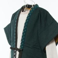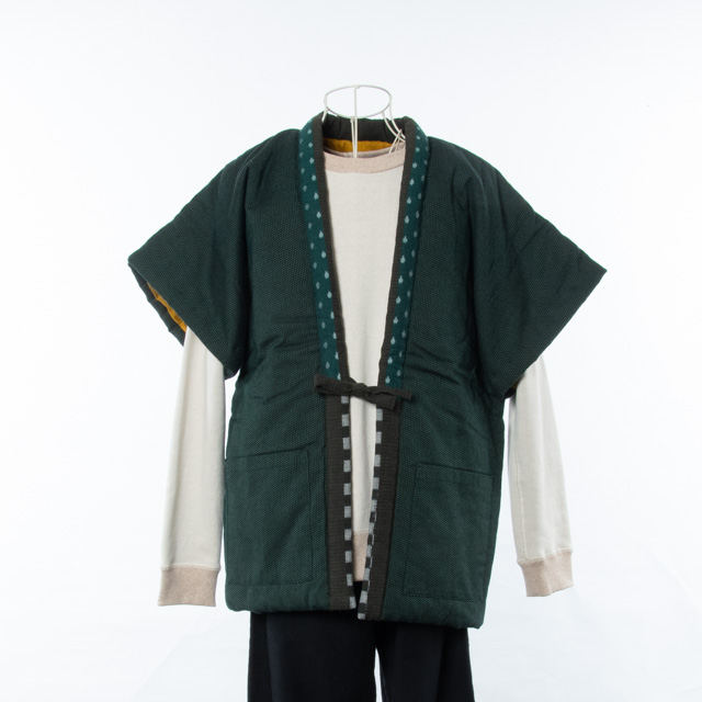 宮田織物 綿入れ半纏 袖なし 撫子奴 グリーン