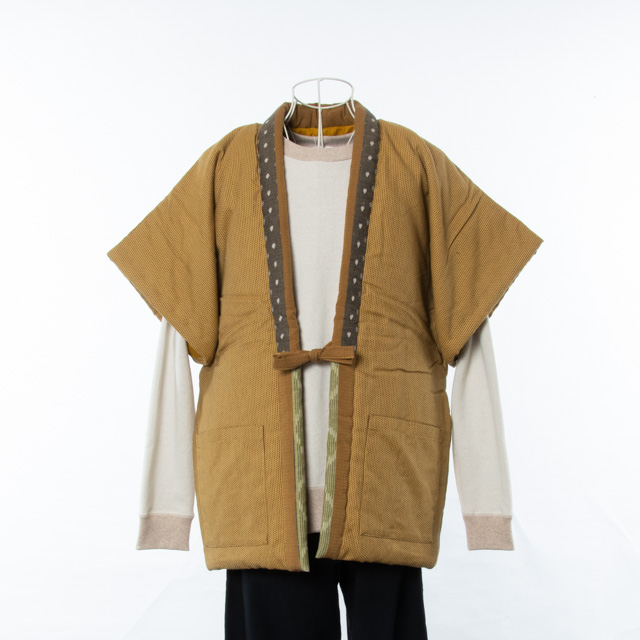 宮田織物 綿入れ半纏 袖なし 撫子奴 カラシ