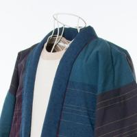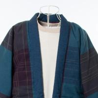 板〆糸とネップ糸を入れた格子柄の鼓星(つつみぼし)生地。鮮やかな色目の袢天です