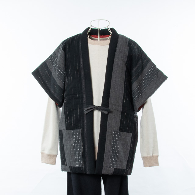 宮田織物 綿入れ半纏 袖なし 冬椿奴 黒