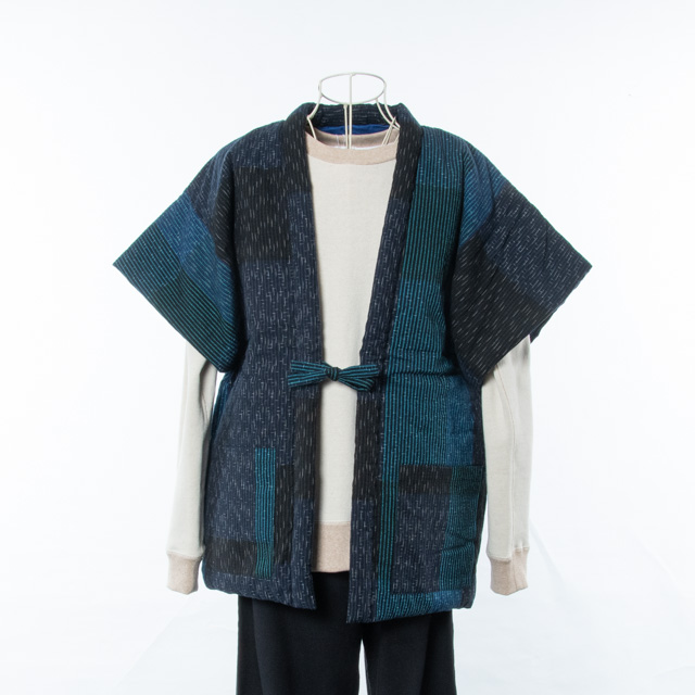 宮田織物 綿入れ半纏 袖なし 枇杷奴 ブルー