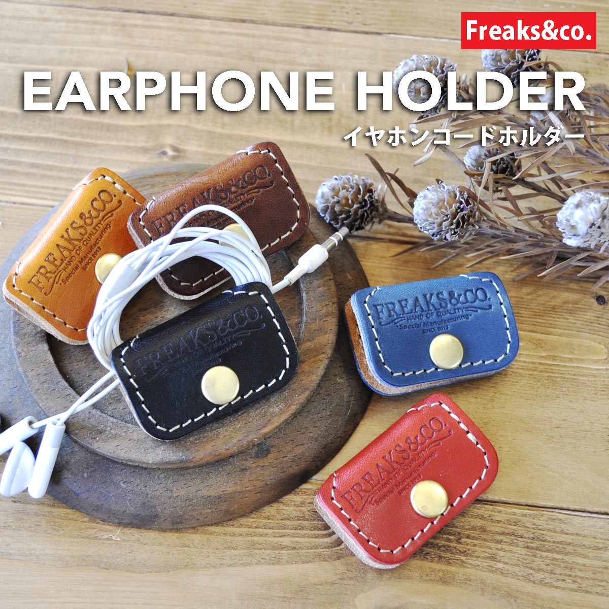 イヤホン イヤホンホルダー コードホルダー まとめる 収納 レザー コードクリップ ケーブルクリップ 本革 牛革 栃木レザー 全5色 日本製 Freaks&co.