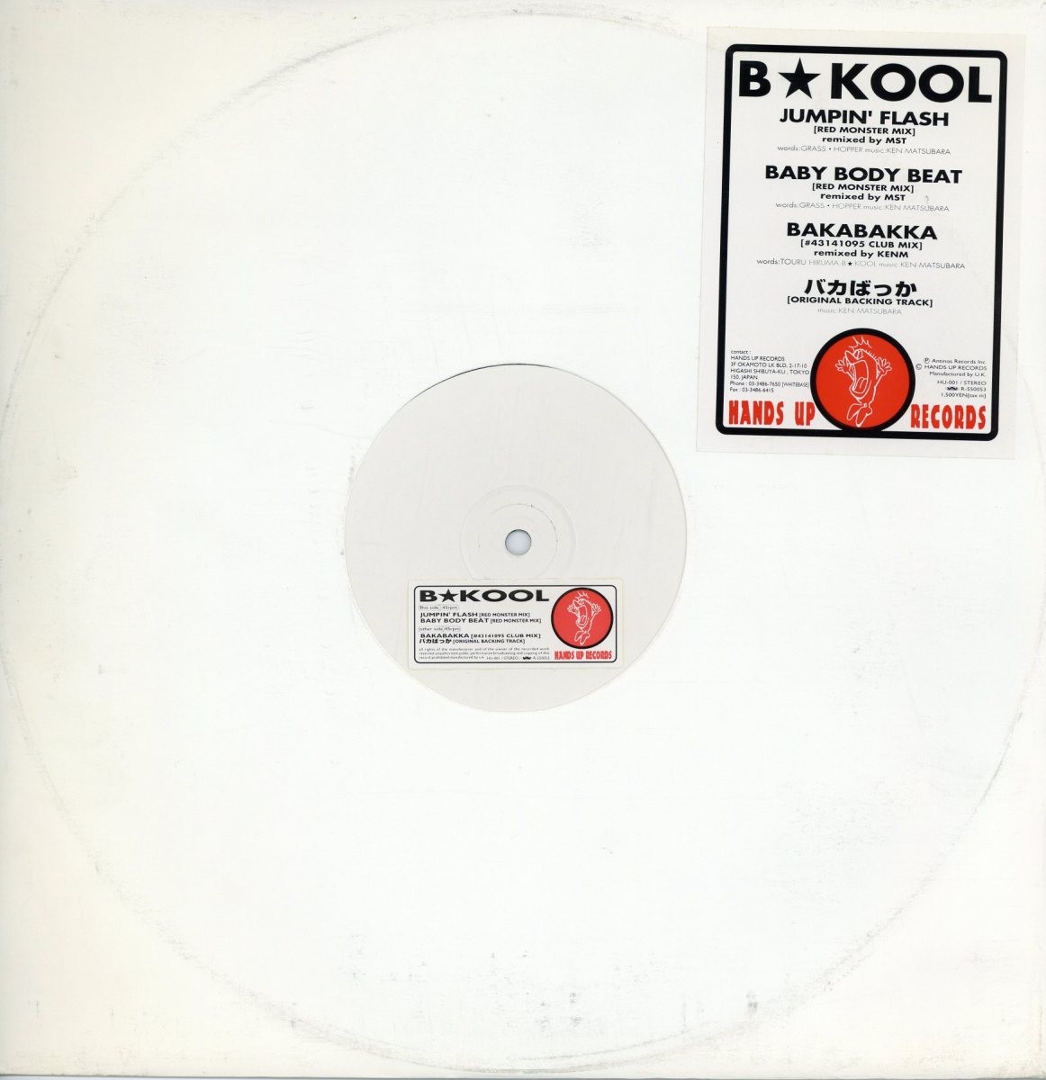 製造国 : JAPAN リリース年 : 1995 レーベル : HANDS UP 品番 : HU-001 希少な1枚が中古で入荷しました!! 90年代に台湾や韓国などアジアにて爆発的な人気を誇ったDance & Hiphop ユニット「B★KOOL」による12インチ!! B面には、1stアルバム「Kool Stuff」からのチャラ・ラップチューンの"バカばっか"もオススメです。