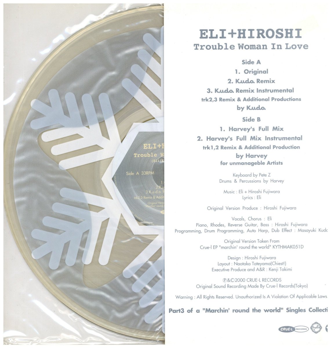 製造国 : JAPAN リリース年 : 2000 レーベル : CRUE-L 品番 : KYTHMAK051RX-3 '00リリースのJapanese R&B作がデッドストック入荷!! 90年代、渋谷系サウンドで一世風靡したバンド「Love Tambourines」のヴォーカリストEliがバンド解散後に、藤原ヒロシとのコラボ作としてリリースしたシングル。藤原ヒロシ製作によるオリジナルテイクのA-1、K.U.D.O.によるRemixのA-2、HarveyによるRemixのB-1の3テイクを収録。豪華なジャケにクリア・ヴァイナル限定仕様です。
