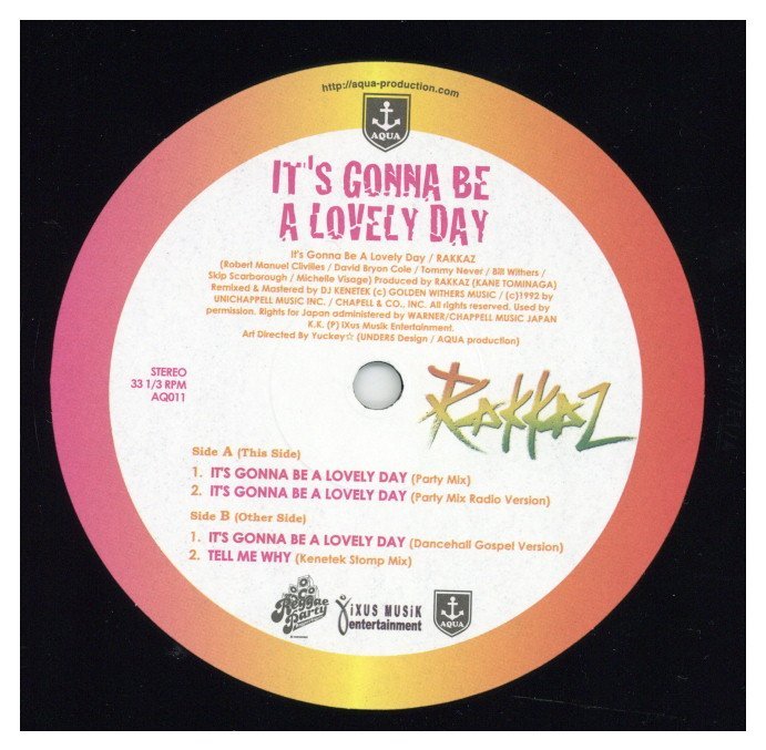 製造国 : JAPAN リリース年 : 2008 レーベル : AQUA 品番 : AQ011 こんなにアッゲ・アゲな"Lovely Day"聴いたことない!! Bill Withersの名曲をフロア受け抜群のピーク・タイム仕様にカバーした必殺リミックス!! "Tell Me Why"(2000枚)、"What You Want Do For Love"(1000枚)と過去全てのタイトルが好セールスを記録した米、英、日本人からなるグループRakkaz!! 待望のアナログ第3弾がリリース!! こんなにアッゲ・アゲな"Lovely Day"聴いたことない!! おそらく数ある"Lovely Day"カバーの中でも「1番アッパーなのでは!?」と思わせるA-1、イントロ、アウトロをカットし、短くまとめたショート・バージョンA-2、Diwali (ディワリ)ビートで仕上げられた、強力リミックスB-1、問い合わせが絶えない大人気曲"Tell Me Why"のアン・リリースド・リミックスB-2の全4曲!!