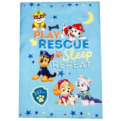 MORIPiLO パウパトロール 掛け布団カバー シングル (パウパト フレンズ 柔らかピーチスキン) ジュニアサイズ 子供用 ブルー 130x