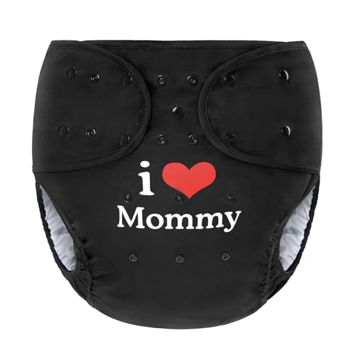 LittleForBig 大人用布おむつカバー 可愛い絵柄ママが大好き調節可能なウエストと長さ スナップ付 漏れ防止 通気性 洗濯可 ブラック