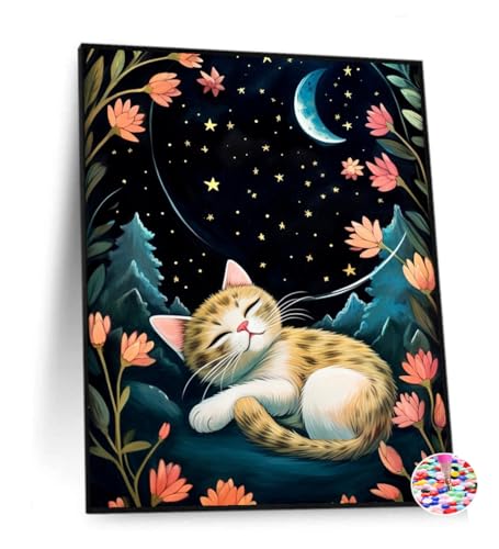 ダイヤモンドアート スクエア 四角 ダイヤモンドペインティング 手作り絵画 全面貼り付けタイプ ビーズアート 30x40cm 夜空の猫