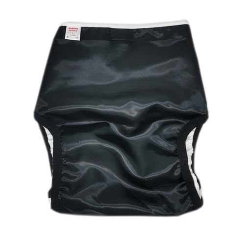 ママミッケ おむつカバー 股おむつ 大人用 かわいい マジックテープ サイズ調整 快適 防水加工 (黒色、サテン LL)