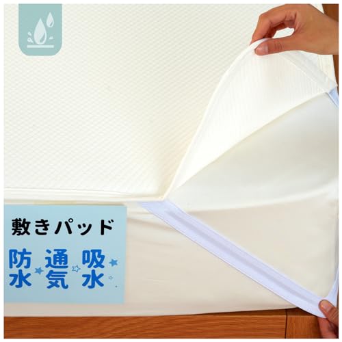 ・サラサラ四層立体構造&良い通気性おねしょシーツは四層建ての構造を持っていますので、生地と生地の間に空気の層を形成し、空気の流れを促進します。中間層の吸水通気層は水をしっかり捕獲し、防水を発揮します。通気性が良いため、使用しても蒸れません。また、吸水素材によりおねしょや汚れが浸み込んで細菌が増殖する可能性を最小限に抑え、ダニの侵入もシャットアウト。いつでも清潔かつ衛生的な環境を保つための、頼りになる防水シーツです。