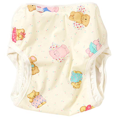 ママミッケ おむつカバー 股おむつ 大人用 かわいい マジックテープ サイズ調整 快適 防水加工 (くま、はな L)