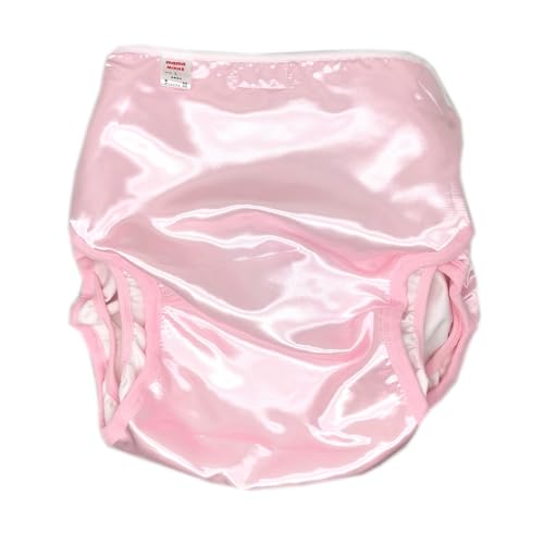 ママミッケ おむつカバー 股おむつ 大人用 かわいい マジックテープ サイズ調整 快適 防水加工 (ピンク色、サテン L)
