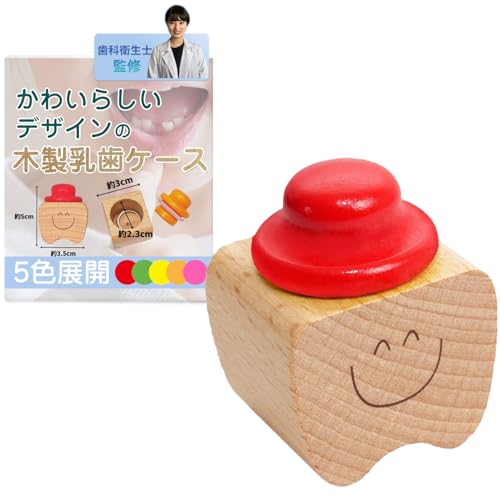 歯科衛生士監修 乳歯ケース 木製 乳歯入れ コンパクト 乳歯 保存用ケース (レッド)