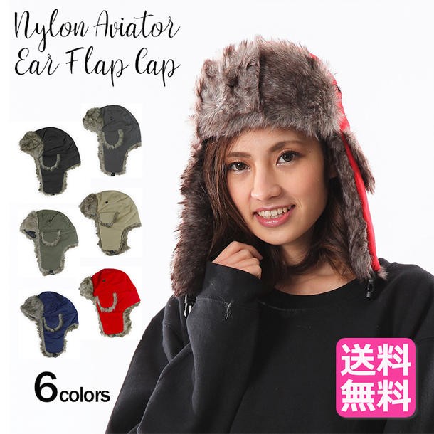 帽子 アビエーター ナイロン キャップ フェイクファー フラップキャップ パイロット帽 耳当て付き帽子 防寒 おしゃれ ロシア帽