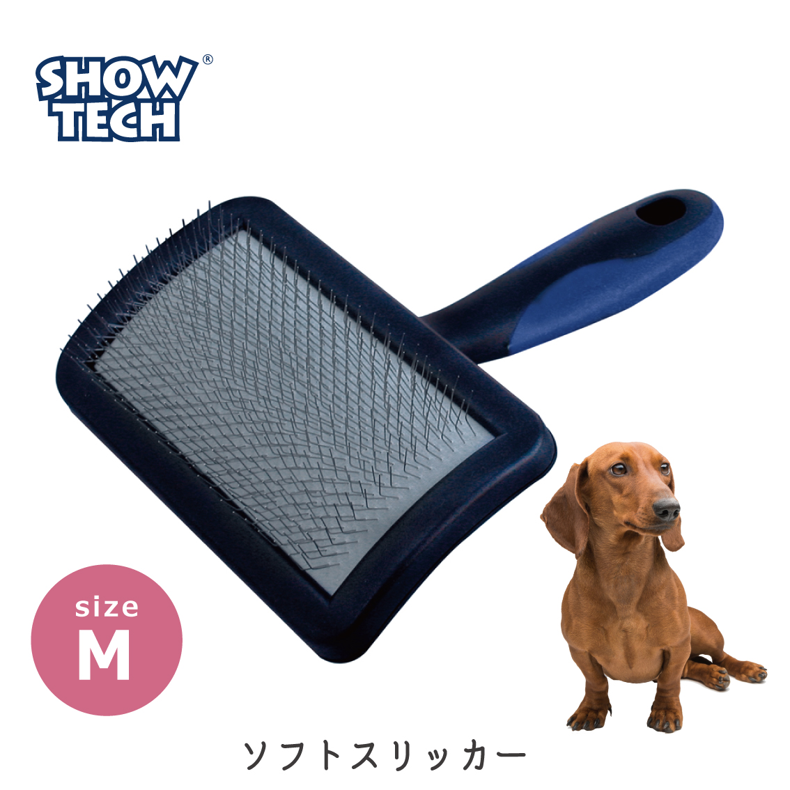 犬 ブラシ 犬用ブラシ 猫 スリッカーブラシ ブラッシング 軟毛 ソフトピン 仔犬 SHOWTECH ショーテック ユニバーサル ソフトスリッカー Mサイズ
