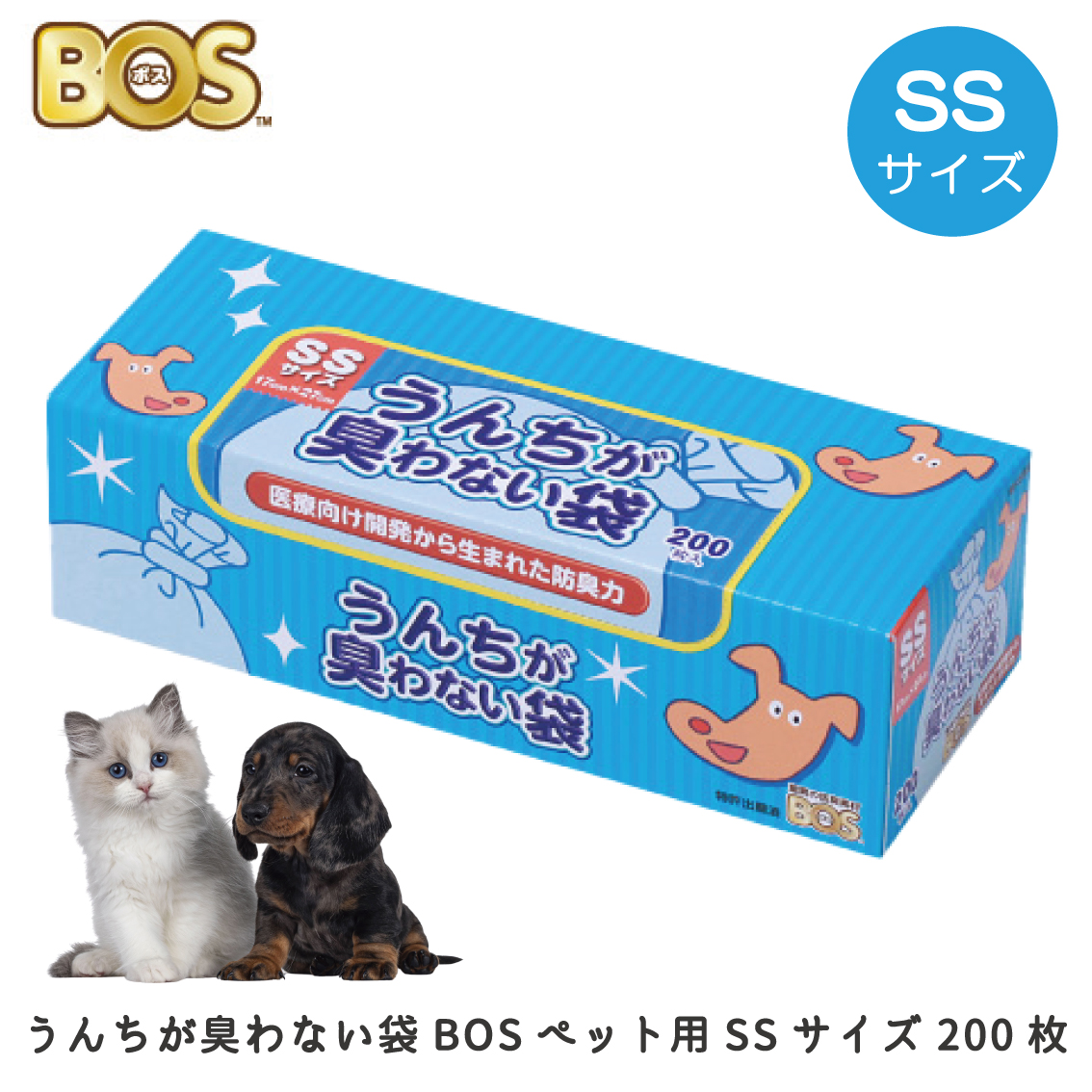 ペット用 エチケット袋 クリロン化成 防臭 防臭袋 犬用 散歩 車おでかけ トイレ BOS うんちが臭わない袋 サイズ SS 200枚入り FREEBIRD フリーバード