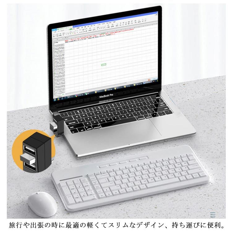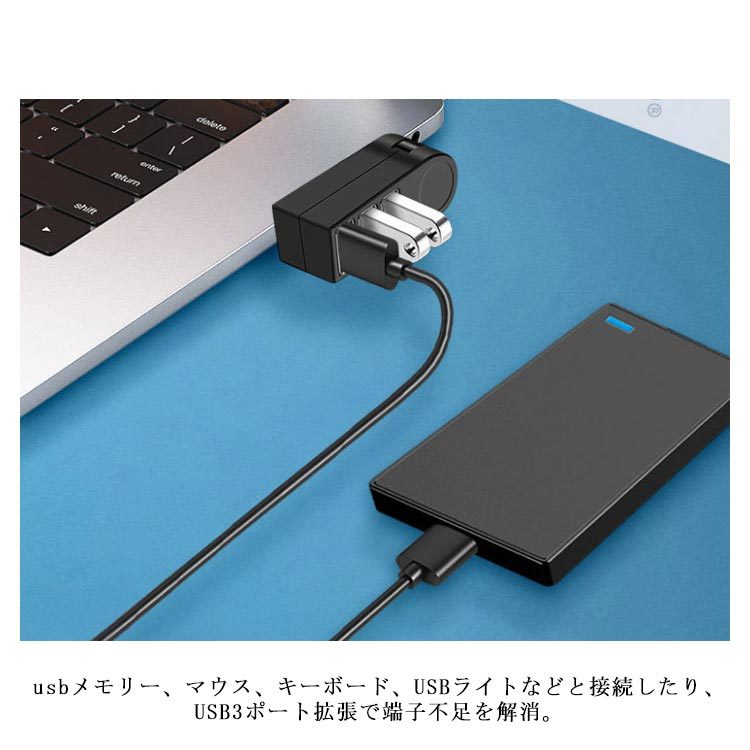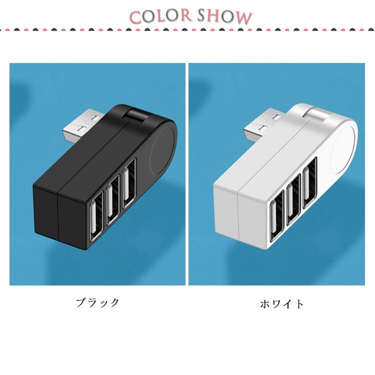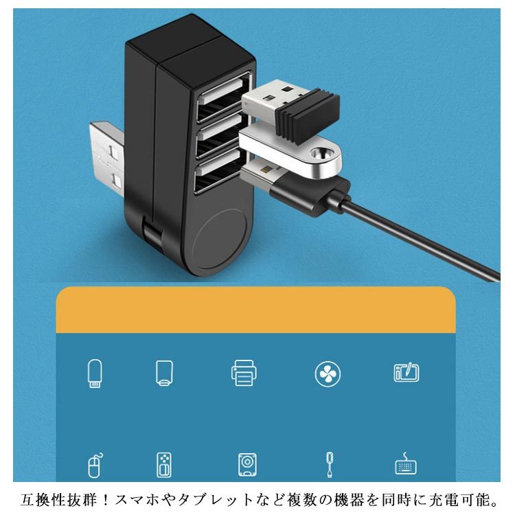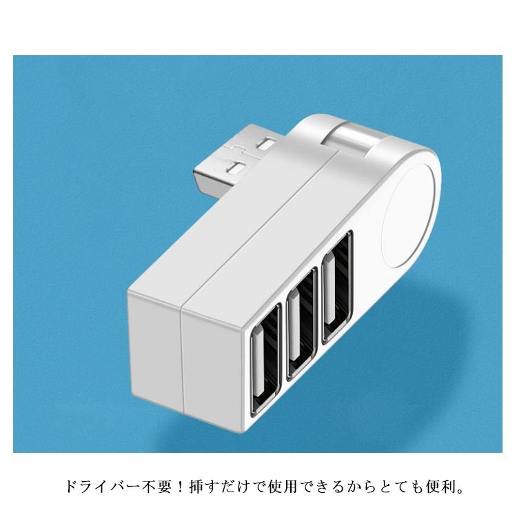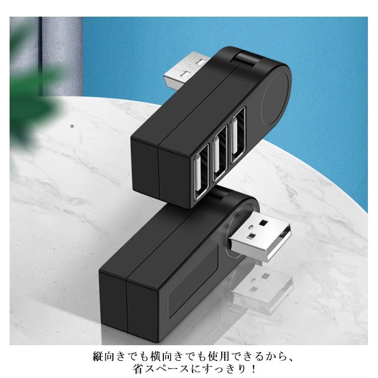 | 270度回転するUSB2.0 3ポートハブ。 縦向きでも横向きでも使用できるから、省スペースにすっきり! ドライバー不要!挿すだけで使用できるからとても便利。 互換性抜群!スマホやタブレットなど複数の機器を同時に充電可能。 usbメモリー、マウス、キーボード、USBライトなどと接続したり、USB3ポート拡張で端子不足を解消。 旅行や出張の時に最適の軽くてスリムなデザイン、持ち運びに便利。 | |