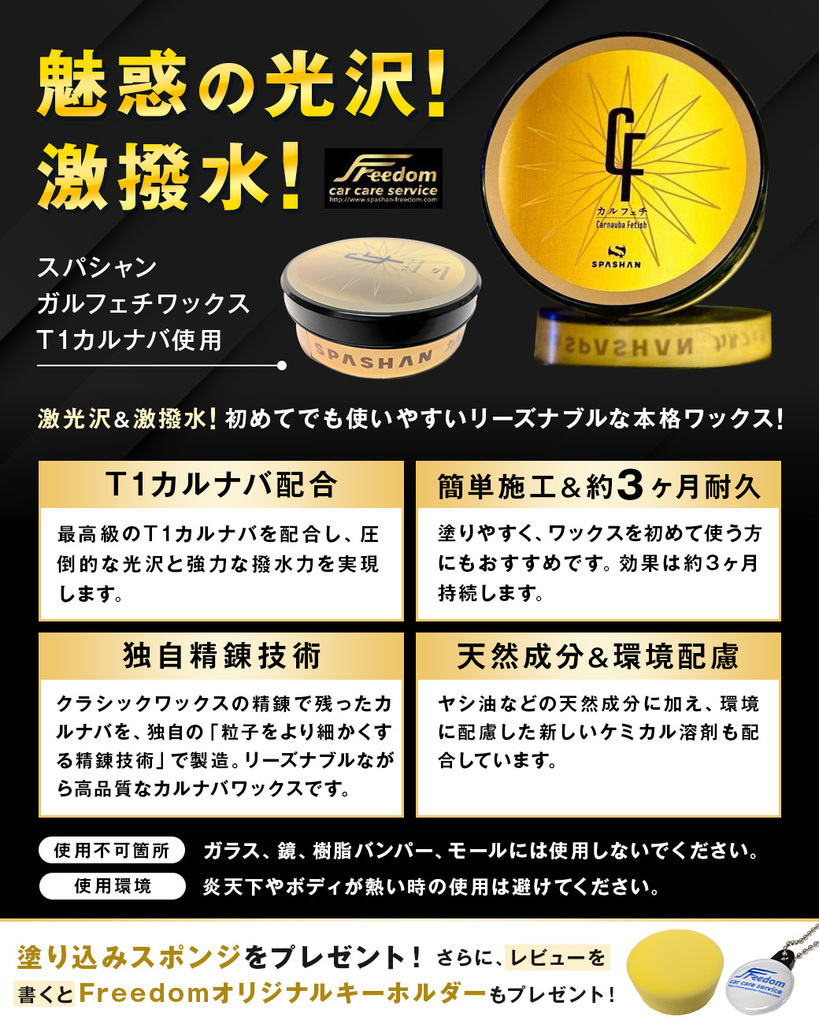 NEW スパシャン ガルフェチワックス T1ガルナバ使用 激光沢 激撥水でリーズナブル 塗り込みスポンジプレゼント