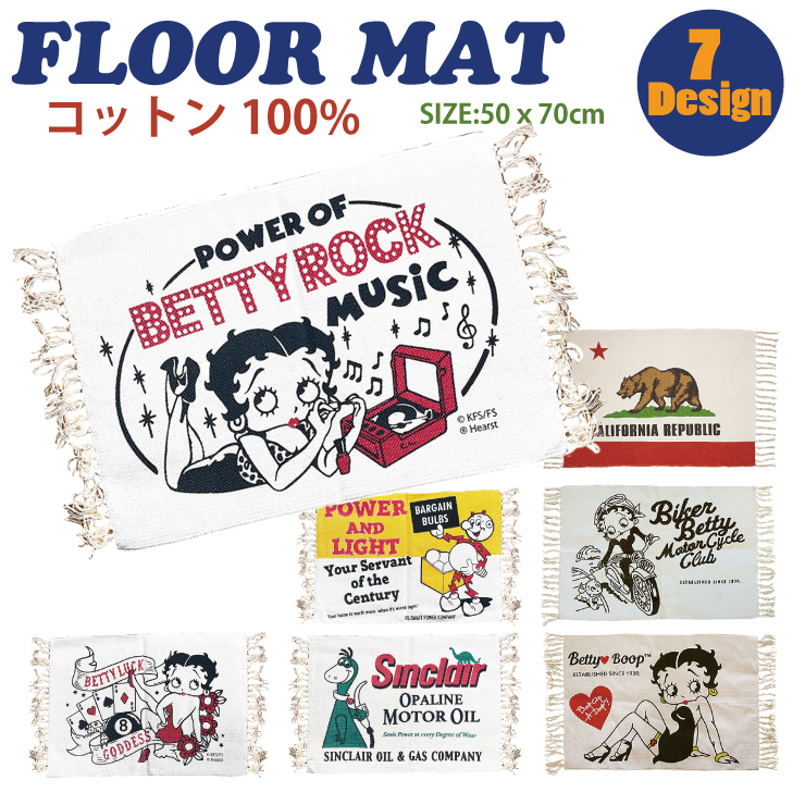 フロアマット -01 アメキャラ 生成りベース 7種類 ベティ FEPC シンクレア カリフォルニア 玄関 フリンジ付き キッチン リビング お風呂【メール便対応】┃