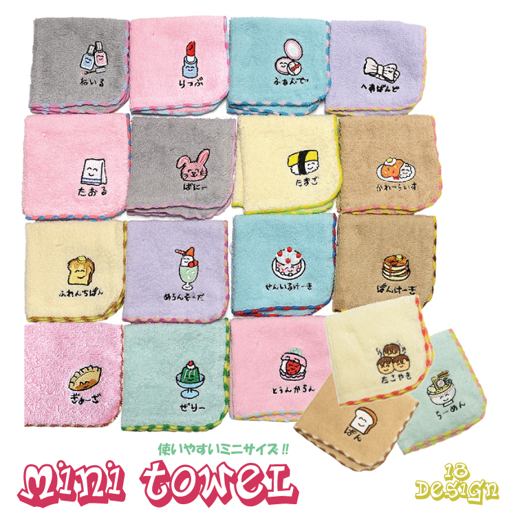 【6点までメール便280円対応】ミニタオル おえかきさん ハンカチ 18種類 ハンドタオル お手拭き ギフト プレゼント メイク アニマル キャラクター ポケット ┃