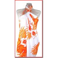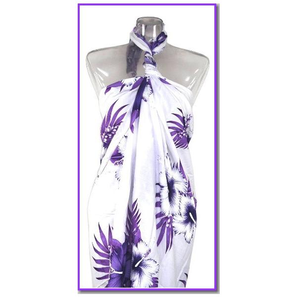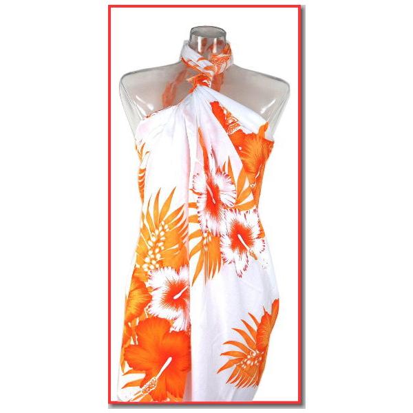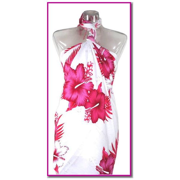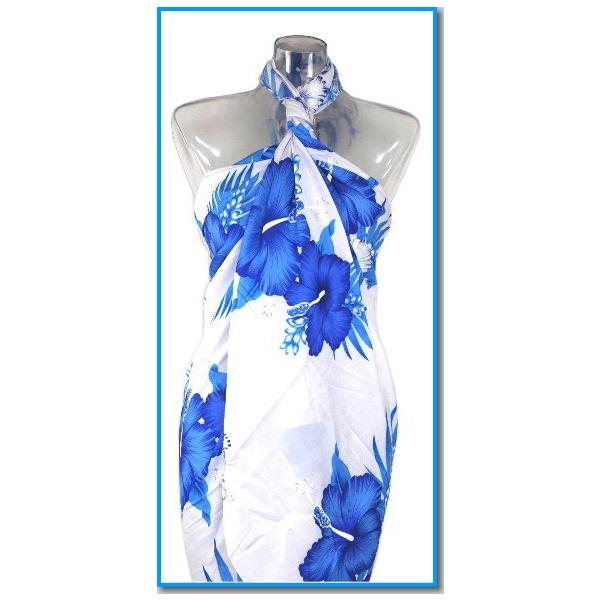 【2枚までメール便280円対応】【特価】パレオ 白ベースに大判ハイビスカス 花柄模様 5カラー 水着とコーディネート 大柄 大判 ロング アレンジ p-037 ┃