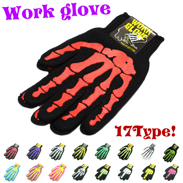 ワーク グローブ スカルボーン デザイン ニット手袋【ワークグローブ ニット 軍手 防寒 手袋 通勤通学 の防寒対策】【メール便対応】┃