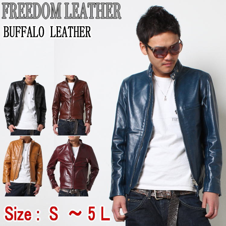 革ジャン メンズ 本革 レザージャケット ブラック バッファローレザー シングルライダース 黒 茶 プレゼント ギフト フリーダム 送料無料 あすつく