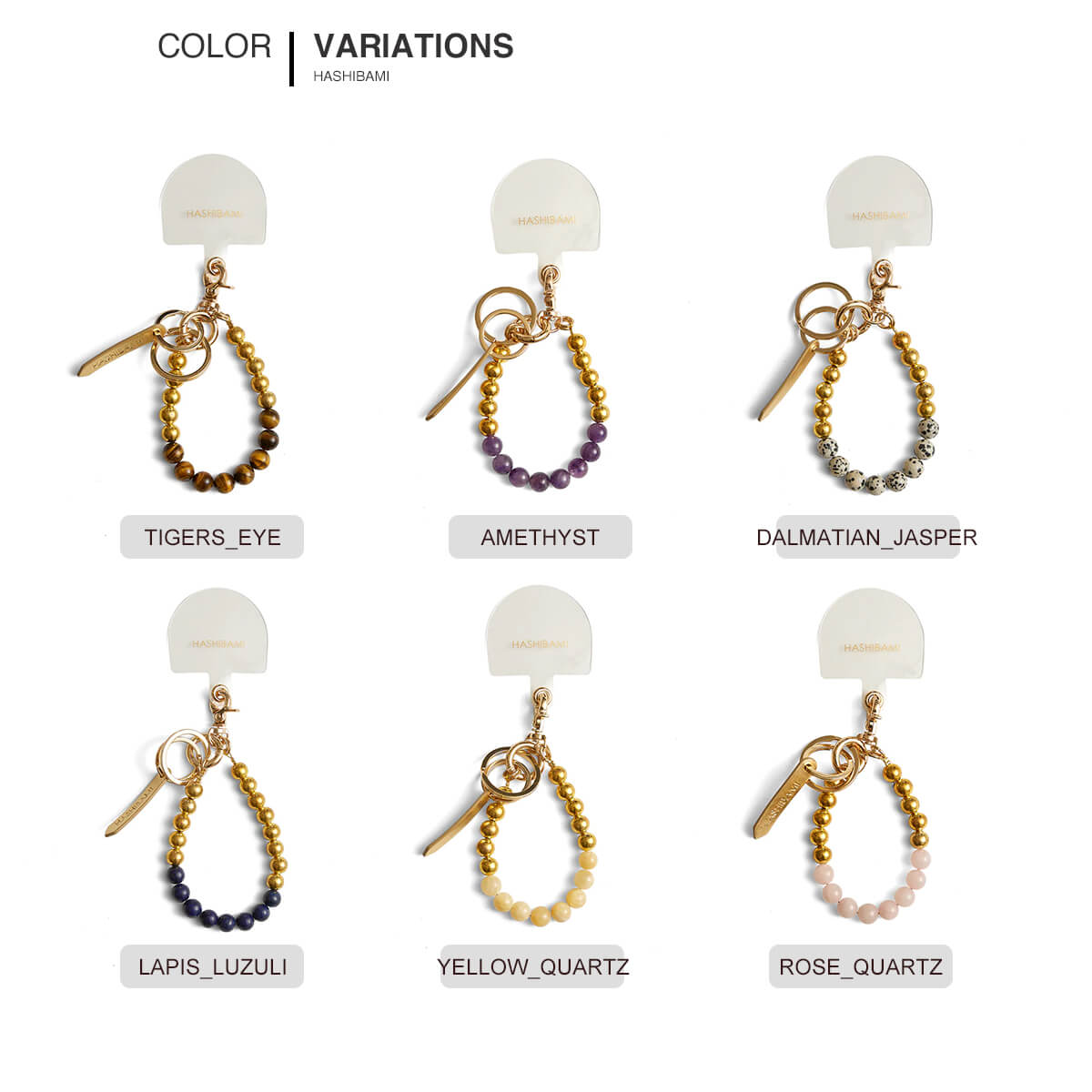 ▼HASHIBAMI / 天然石×ゴールドビーズ スマホハンドストラップ
