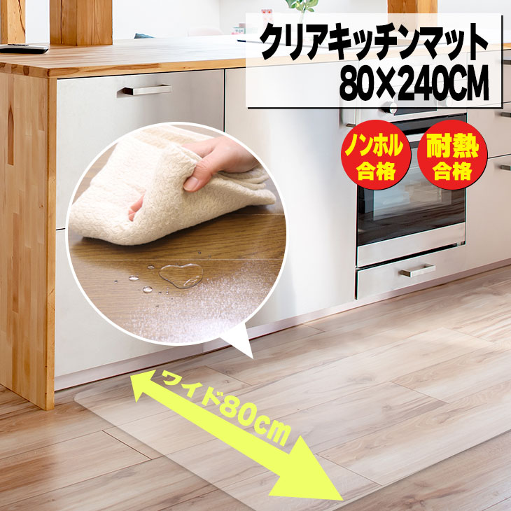 キッチンマット 透明 クリア 80×240cm 拭ける 抗菌 防臭 厚1.5mm おしゃれ 240cm 撥水 水拭き PVC ビニール 水拭き 台所