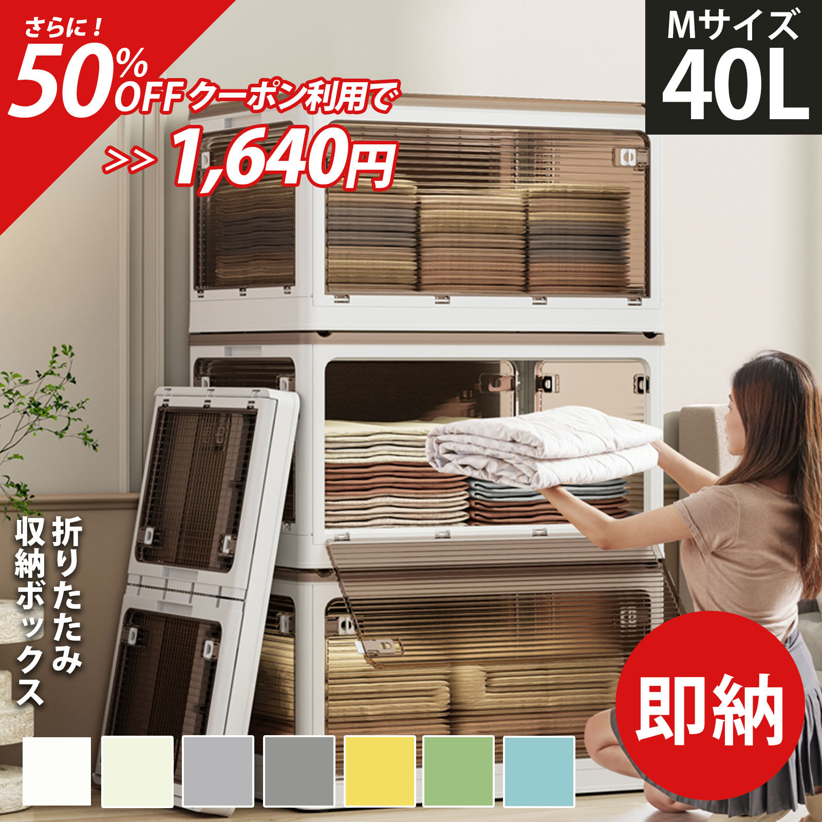 収納ボックス 収納ケース M 40L 折りたたみ 収納 ふた付き キャスター付き 5面開き ホワイト 白 おしゃれ プラスチック 衣装ケース コンテナ ボックス 衣類