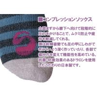 土踏まずから膝下へ向けて段階的に程よく圧力を加え、ムクミ防止や疲労軽減の効果をもたせた機能性ソックスです。