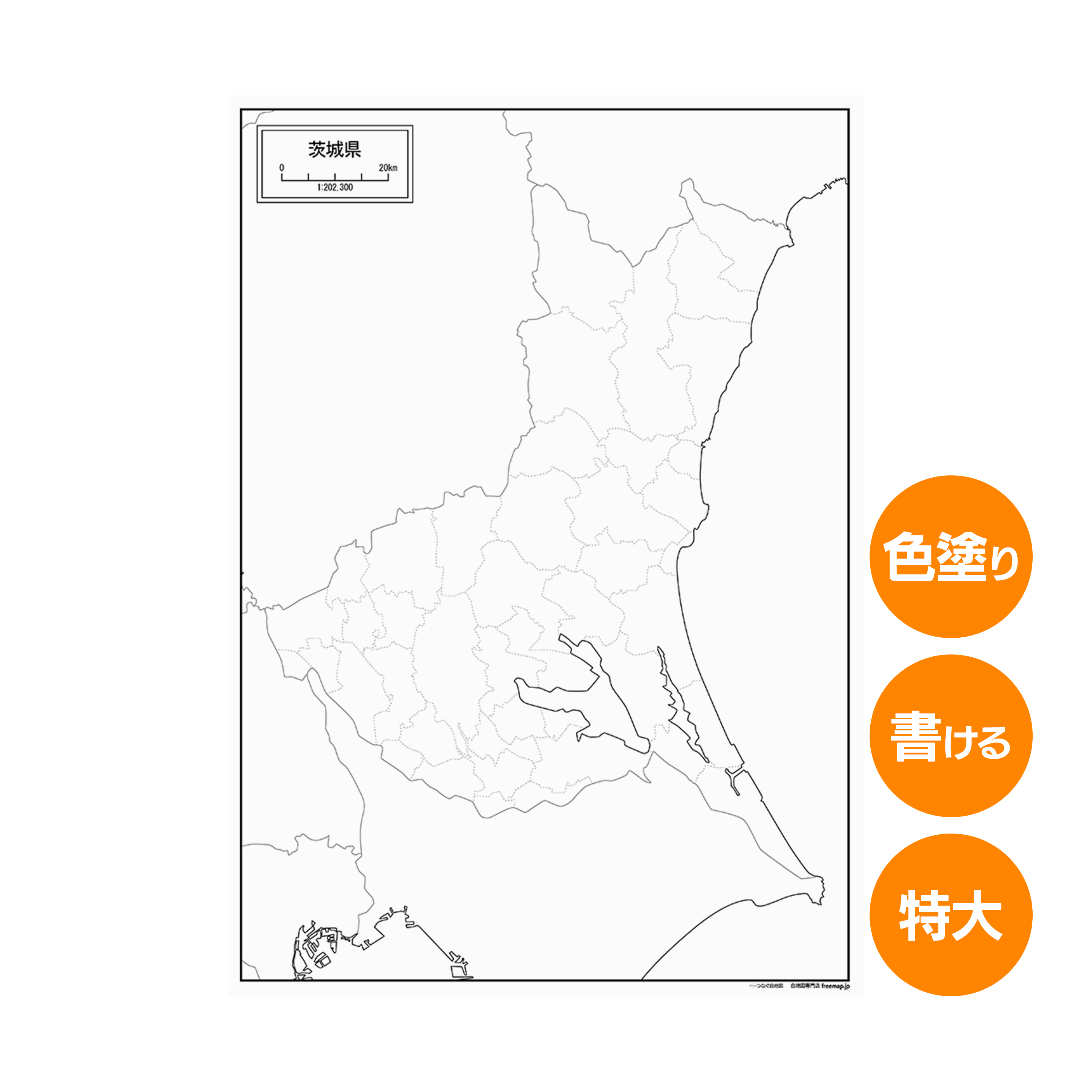 茨城県の書ける白地図 特大サイズ 2枚入り 都道府県別日本地図 神栖市 境町 A1サイズ A2サイズ