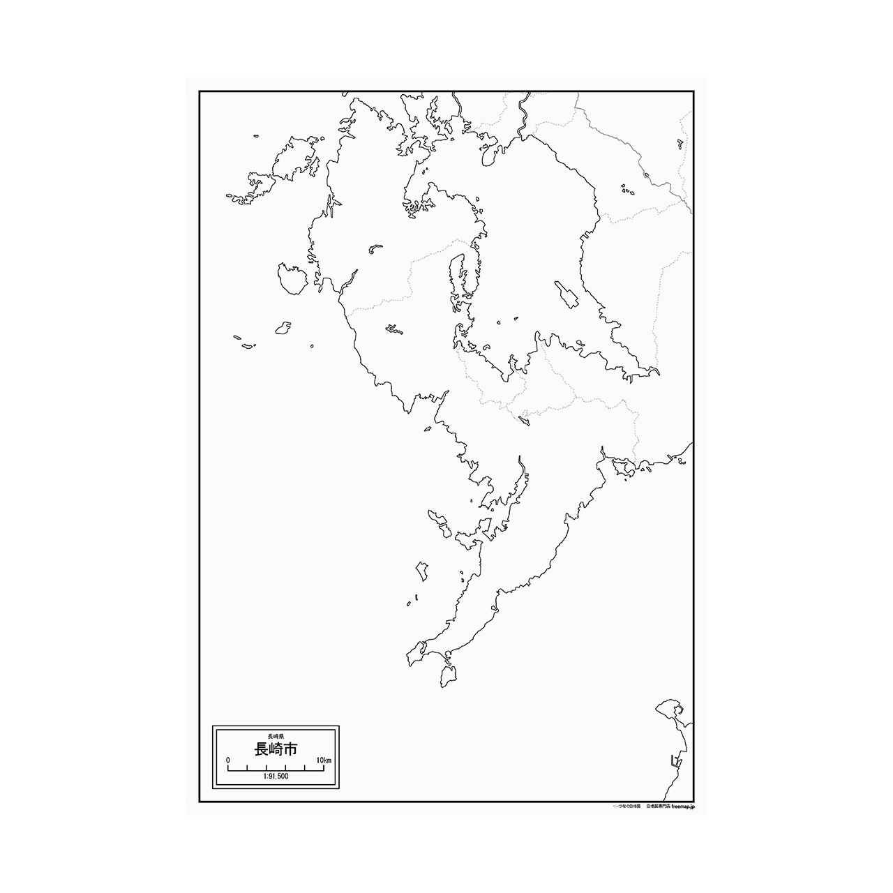 長崎県長崎市の白地図ポスターです。