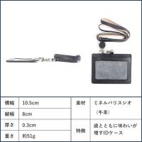 <サイズ>本体:約 縦80 x 横106 x 厚み4 mm ※突起部分含まず、ストラップ:約 縦500 x 横21 x 厚み9 mm (伸ばした状態)、ストラップ周囲の長さ:約840 mm、重量:約45g<素材>革:Colorful Chrome Leather / Noir、ストラップ:PP(ポリプロピレン)テープ●金具:亜鉛合金●窓フィルム:PVC<仕上げ>コバ縁返し合わせ仕上げ/同色ステッチ<有効サイズ>裏表のポケット共に:約 縦60 x 横95 x 厚み2mm<機能>IDケース:窓付きポケット x 1 / 背面ポケット x 1 、ネックストラップ:リール×1(最長 約400mm 常用荷重:約50g) /セーフティーパーツ付き