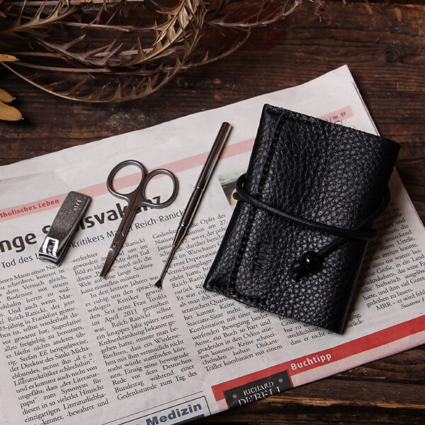 - ・爪切(日本製)・鋏(イタリア製)・耳かき(日本製)・ケース(日本製):牛革