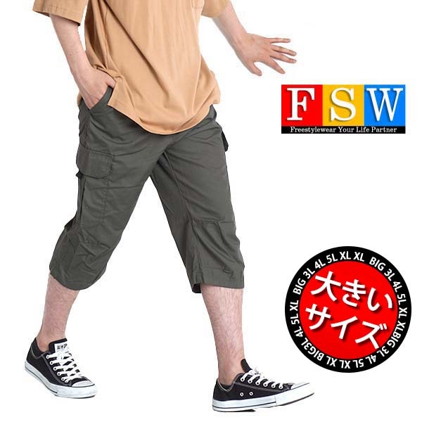7分丈 パンツ メンズ 大きいサイズ カーゴパンツ 七分丈 ハーフパンツ ひざ下 ゆったり 3L 4L 5L 夏 夏用 カーゴ ワーク ミリタリー 薄手 迷彩